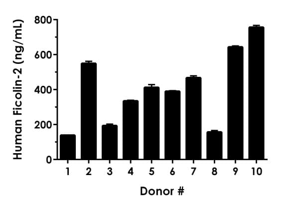 Human Ficolin-2 ELISA Kit is a single-wash 90-min SimpleStep ELISA® for the quantitative measurement of Human Ficolin-2 in Cell culture media, Heparin Plasma, Serum, EDTA Plasma samples.