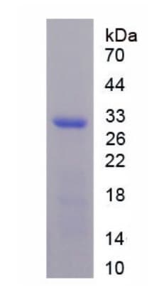 Recombinant Human COL4A3 protein (His tag) is a Human Fragment protein, in the 1428 to 1670 aa range, expressed in Escherichia coli, with >97% purity, < 1 EU/µg endotoxin level and suitable for SDS-PAGE.