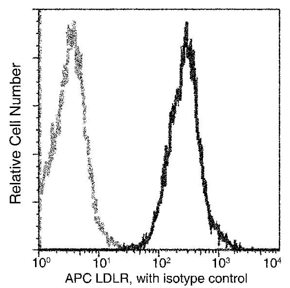 Rabbit Recombinant Monoclonal LDL Receptor antibody - conjugated to APC. Suitable for Flow Cyt and reacts with Human samples. Cited in 1 publication. Immunogen corresponding to Recombinant Fragment Protein within Human Low-density lipoprotein receptor aa 1-800.