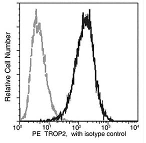 Rabbit Recombinant Monoclonal TROP2 antibody - conjugated to PE. Suitable for Flow Cyt and reacts with Human samples. Immunogen corresponding to Recombinant Fragment Protein within Human TACSTD2 aa 1-300.