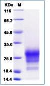 Recombinant Human CD90 / Thy1 protein (His tag) is a Human Fragment protein, in the 1 to 130 aa range, expressed in HEK 293, with >95% purity, < 1 EU/µg endotoxin level and suitable for SDS-PAGE.