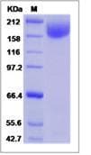 Recombinant HIV1 gp140 protein (Fc Chimera) is a Fragment protein, in the 33 to 659 aa range, expressed in HEK 293, with >95% purity, < 1 EU/µg endotoxin level and suitable for SDS-PAGE.
