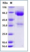 Recombinant Mouse CLEC1 protein (Fc Chimera) is a Mouse Fragment protein, in the 73 to 269 aa range, expressed in HEK 293, with >95% purity, < 1 EU/µg endotoxin level and suitable for SDS-PAGE.