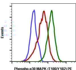 Rabbit Recombinant Monoclonal MK14 phospho Y182 + T180 antibody - conjugated to PE. Suitable for Flow Cyt and reacts with Rat samples. Immunogen corresponding to Synthetic Peptide within Human MAPK14 phospho Y182 + T180.