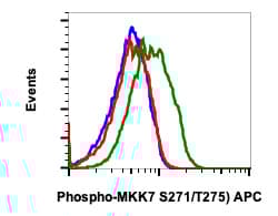 Rabbit Recombinant Monoclonal MKK7 phospho S271 + T275 antibody - conjugated to APC. Suitable for Flow Cyt and reacts with Human samples. Immunogen corresponding to Synthetic Peptide within Human MAP2K7 phospho S271 + T275.