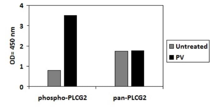 Phospho-PLCG 2 (Y753) ELISA Kit is a Semi-quantitative ELISA kit for the measurement of Phospho-PLCG 2 (Y753) in Human in Cell Lysate samples.