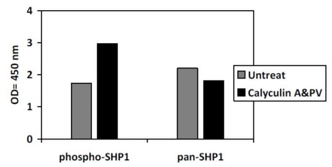 Phospho-SHP-1 (S591) ELISA Kit is a Semi-quantitative ELISA kit for the measurement of Phospho-SHP-1 (S591) in Human in Cell Lysate samples.