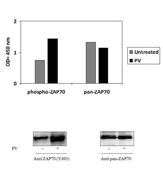 Phospho-ZAP70 (Y493) ELISA Kit is a Semi-quantitative ELISA kit for the measurement of Phospho-ZAP70 (Y493) in Human in Cell Lysate samples.