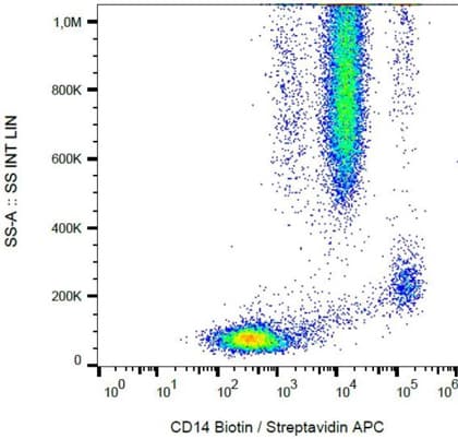 Mouse Monoclonal CD14 antibody - conjugated to Biotin. Suitable for Flow Cyt and reacts with Human samples. Cited in 1 publication. Immunogen corresponding to Native Full Length Protein corresponding to Human CD14.