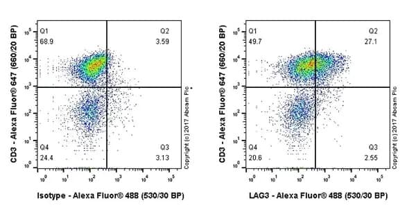 Rabbit Recombinant Monoclonal LAG-3 antibody. Carrier free. Suitable for ICC/IF, IP, Flow Cyt, WB, IHC-P and reacts with Transfected cell line, Human samples.