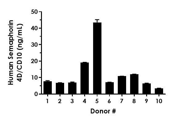 Human Semaphorid 4D/CD10 ELISA Kit is a single-wash 90-min SimpleStep ELISA® for the quantitative measurement of Human Semaphorid 4D/CD10 in Cell culture media, Heparin Plasma, Serum, EDTA Plasma samples.