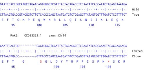 PAK2 KO cell line available to order. KO validated by Next Generation Sequencing. Free of charge wild type control provided.