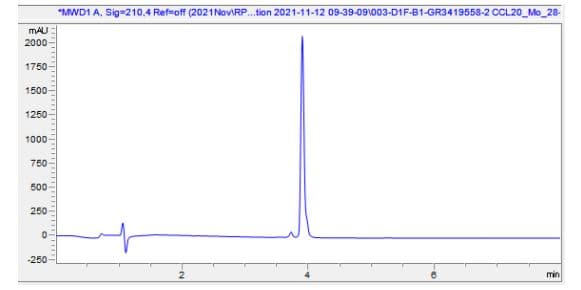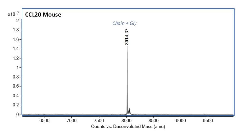 Recombinant Mouse Macrophage Inflammatory Protein 3 alpha is a Full Length protein, in the 28 to 97 aa range, expressed in HEK 293, with >=95% purity, <= 0.005 EU/µg endotoxin level and suitable for SDS-PAGE, MS, HPLC.