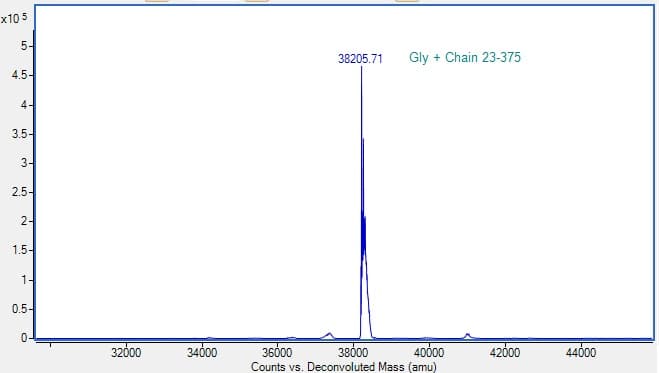 Recombinant Human FGFR3 Protein (Active) is a Human Fragment protein, in the 23 to 375 aa range, expressed in HEK 293, with >=95% purity, <= 0.005 EU/µg endotoxin level and suitable for SDS-PAGE, FuncS, MS, HPLC.