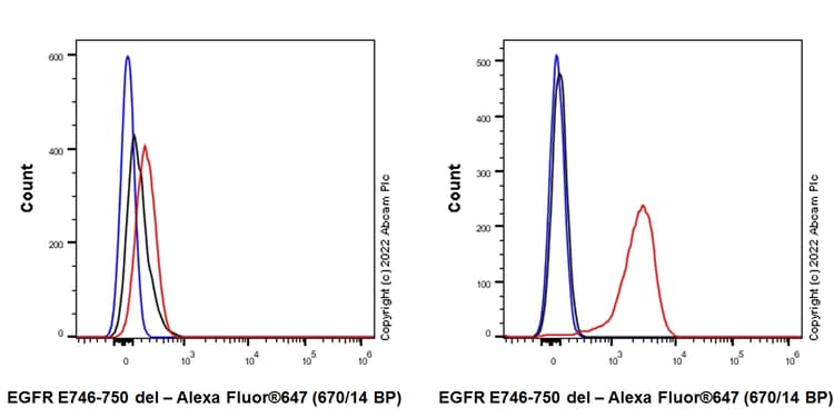 Rabbit Recombinant Monoclonal EGFR deleted E746 + L747 + R748 + E749 + A750 antibody - conjugated to Alexa Fluor® 647. Suitable for Flow Cyt (Intra), ICC/IF and reacts with Human samples.