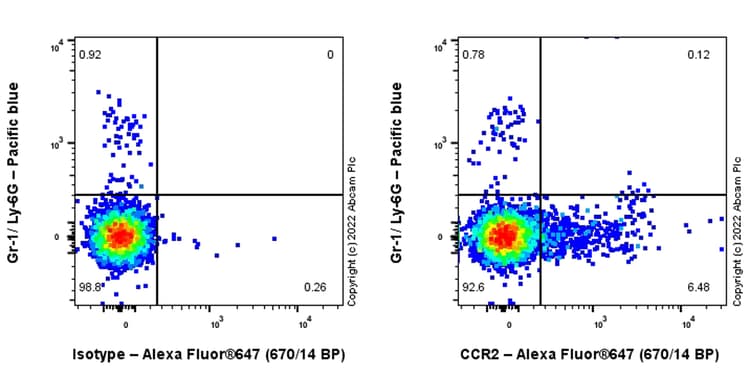 Rabbit Recombinant Monoclonal CCR2 antibody - conjugated to Alexa Fluor® 647. Suitable for Flow Cyt, ICC/IF and reacts with Mouse samples.