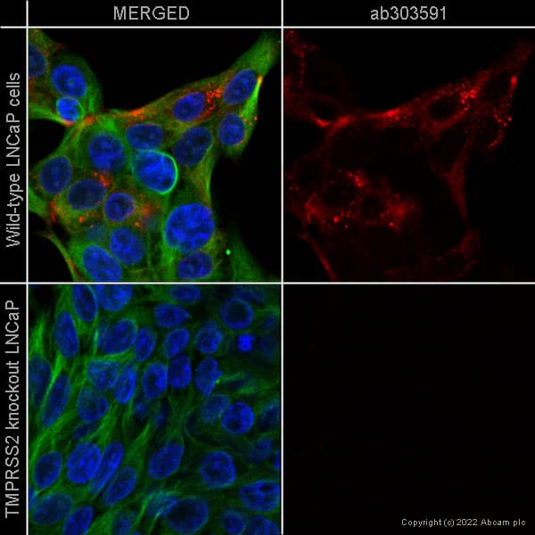 Rabbit Recombinant Monoclonal TMPRSS2 antibody - conjugated to Alexa Fluor® 647. Suitable for ICC/IF and reacts with Human samples.