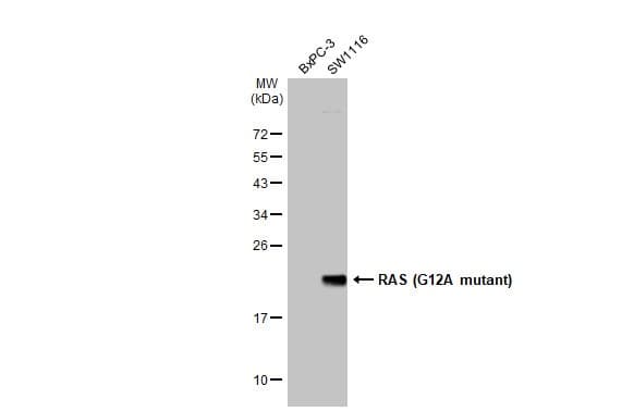 Rabbit Recombinant Monoclonal RASK antibody. Carrier free. Suitable for WB and reacts with Human, Transfected cell line samples. Immunogen corresponding to Synthetic Peptide within Human KRAS.