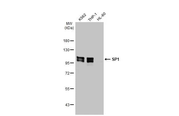 Rabbit Recombinant Monoclonal SP1 antibody. Carrier free. Suitable for IHC-P, ICC/IF, WB and reacts with Human, Mouse, Rat, Transfected cell line samples. Immunogen corresponding to Recombinant Fragment Protein within Human SP1.