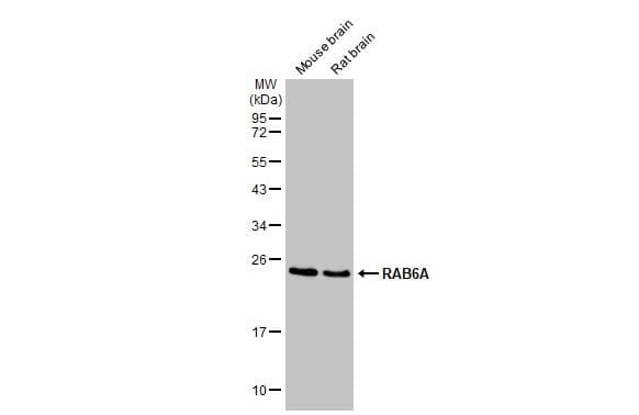 Rabbit Recombinant Monoclonal Rab6A antibody. Carrier free. Suitable for IHC-P, ICC/IF, WB and reacts with Mouse, Human, Rat, Zebrafish, Drosophila melanogaster samples. Immunogen corresponding to Recombinant Full Length Protein corresponding to Human Rab6A.