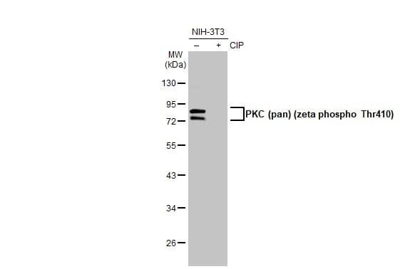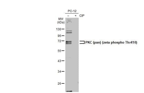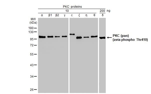 Rabbit Recombinant Monoclonal KPCZ phospho T410 antibody. Carrier free. Suitable for WB and reacts with Human, Mouse, Rat, Recombinant fragment, Drosophila melanogaster samples. Immunogen corresponding to Synthetic Peptide within Human Protein kinase C zeta type phospho T410.