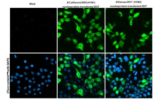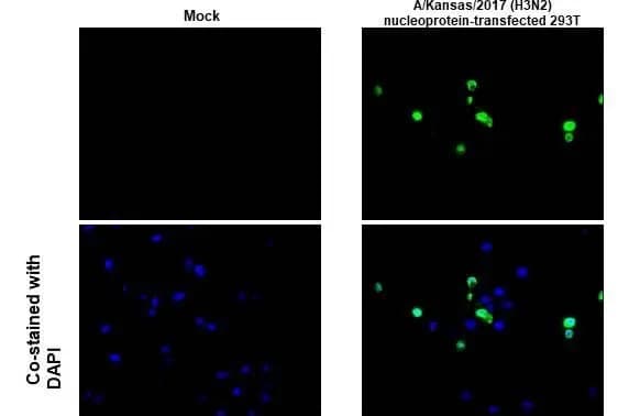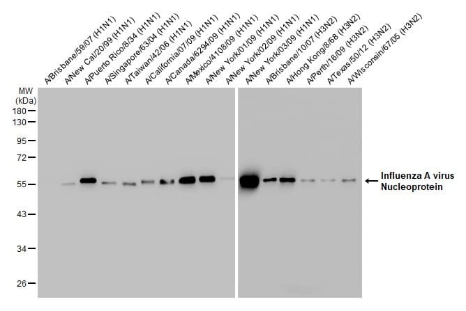 Rabbit Recombinant Monoclonal NCAP antibody. Carrier free. Suitable for I-ELISA, IHC-P, ICC/IF, WB and reacts with Influenza A, Recombinant full length protein - Influenza A, Transfected cell line - Influenza A, Transfected cell lysate - Influenza A samples.