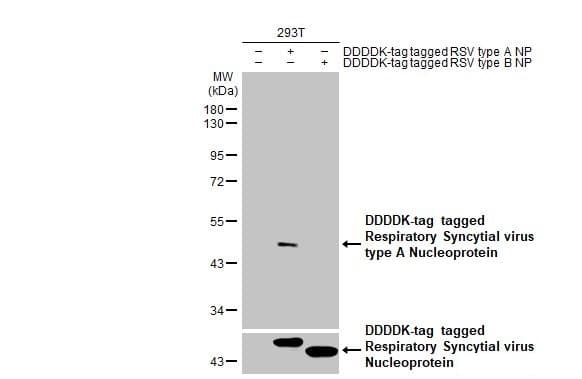 Rabbit Recombinant Monoclonal NCAP antibody. Carrier free. Suitable for WB and reacts with Transfected cell line - Respiratory syncytial virus, Purified native protein samples.