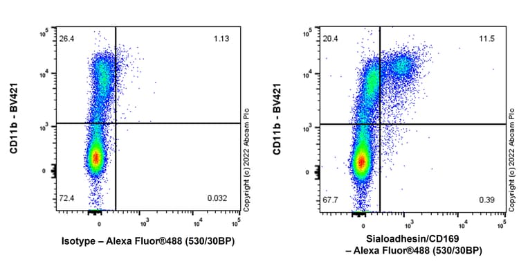 Rabbit Recombinant Monoclonal Sialoadhesin/CD169 antibody - conjugated to Alexa Fluor® 488. Suitable for IHC-P, Flow Cyt (Intra) and reacts with Human samples.