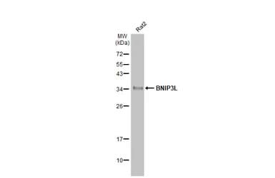 Rabbit Recombinant Monoclonal BNIP3L/NIX antibody. Carrier free. Suitable for WB, ICC/IF and reacts with Rat, Human samples. Immunogen corresponding to Synthetic Peptide within Human BCL2/adenovirus E1B 19 kDa protein-interacting protein 3-like conjugated to Keyhole Limpet Haemocyanin.