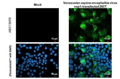 Rabbit Recombinant Monoclonal Venezuelan equine encephalitis virus NSP1 antibody. Carrier free. Suitable for ICC/IF, IHC-P, WB and reacts with Transfected cell line - Venezuelan equine encephalitis virus, Venezuelan equine encephalitis virus, Transfected cell lysate - Venezuelan equine encephalitis virus samples.