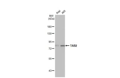 Rabbit Recombinant Monoclonal Tab2 antibody. Carrier free. Suitable for WB and reacts with Human, Mouse samples. Immunogen corresponding to Recombinant Fragment Protein within Human TGF-beta-activated kinase 1 and MAP3K7-binding protein 2.