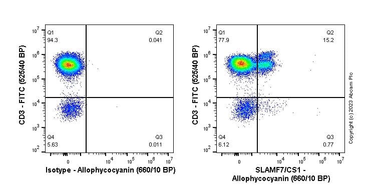 Rabbit Recombinant Monoclonal SLAMF7/CS1 antibody - conjugated to APC. Suitable for Flow Cyt and reacts with Human samples.