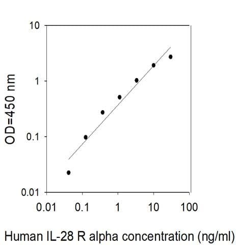 Human IL-28 RA ELISA Kit is a Sandwich (quantitative) ELISA kit for the measurement of Human IL-28 RA in Human in Serum, Plasma, Cell culture supernatant samples.