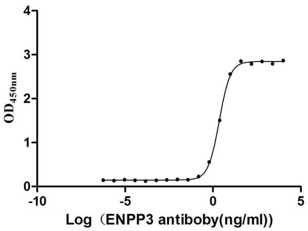 Recombinant human ENPP3/B10 protein - Active (His tag) is a Human Fragment protein, in the 48 to 875 aa range, expressed in Mammalian, with >95% purity, < 1 EU/µg endotoxin level and suitable for SDS-PAGE, FuncS.