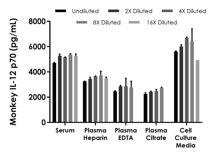 Monkey IL-12 p70 ELISA Kit is a single-wash 90-min SimpleStep ELISA® for the quantitative measurement of Monkey IL-12 p70 in Serum, EDTA Plasma, Heparin Plasma, Citrate plasma, Cell culture media samples.