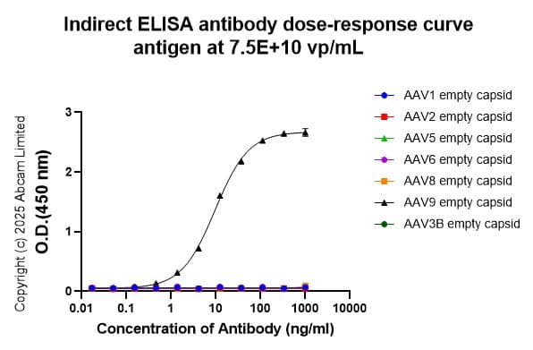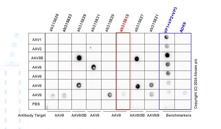 Mouse Recombinant Monoclonal AAV9 antibody. Carrier free. Suitable for I-ELISA, Dot and reacts with Recombinant fragment - Adeno-associated virus 9 samples.