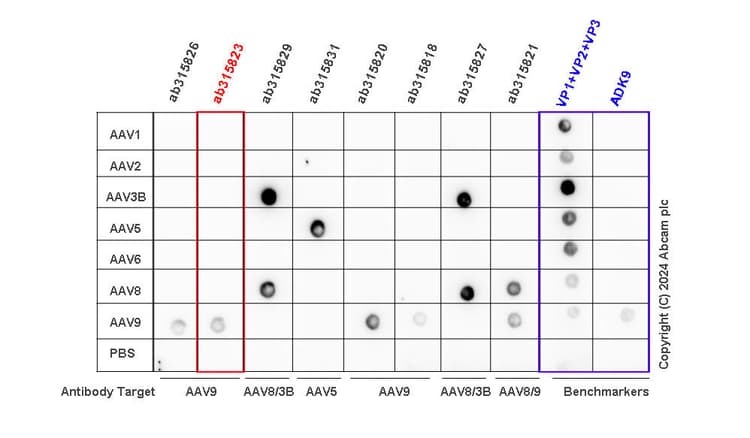 Mouse Recombinant Monoclonal AAV9 antibody. Carrier free. Suitable for I-ELISA, Dot and reacts with Recombinant fragment - Adeno-associated virus 9 samples.