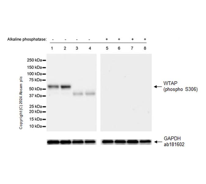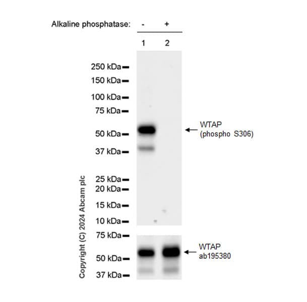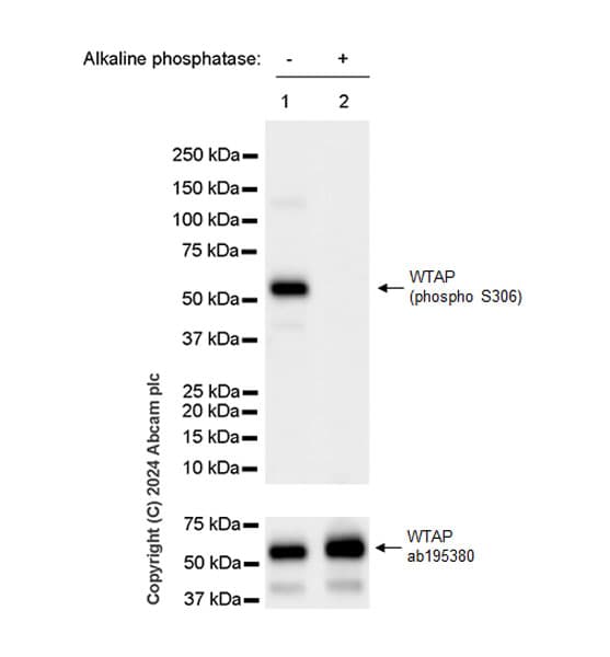 Knockout Tested Rabbit Recombinant Monoclonal WTAP phospho S306 antibody. Carrier free. Suitable for WB, IP, Dot and reacts with Human, Synthetic peptide - Human samples.