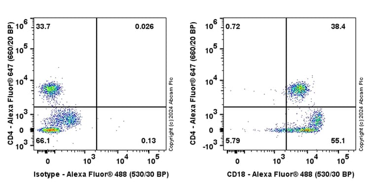 Rabbit Recombinant Monoclonal CD18 antibody - conjugated to Alexa Fluor® 488. Suitable for Flow Cyt and reacts with Human samples.