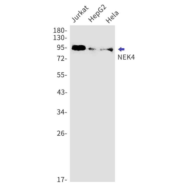 Rabbit Recombinant Monoclonal NEK4 antibody. Suitable for WB and reacts with Human samples. Immunogen corresponding to Synthetic Peptide within Human NEK4.