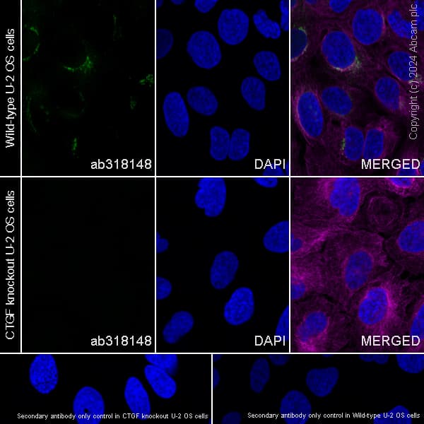 Knockout Tested Rabbit Recombinant Multiclonal CTGF antibody. Suitable for WB, ICC/IF, Flow Cyt (Intra) and reacts with Human, Mouse, Rat samples.