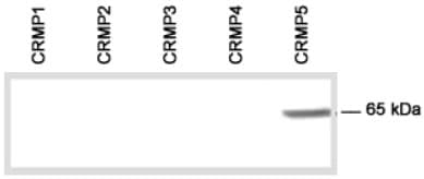 Rabbit Polyclonal CRMP5 antibody. Suitable for WB, IHC-P and reacts with Human samples. Cited in 7 publications. Immunogen corresponding to Synthetic Peptide within Human Dihydropyrimidinase-related protein 5.