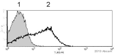 Mouse Monoclonal TLR3 antibody - conjugated to PE. Suitable for Flow Cyt (Intra) and reacts with Human samples. Cited in 2 publications. Immunogen corresponding to Synthetic Peptide within Human TLR3 conjugated to Keyhole Limpet Haemocyanin.