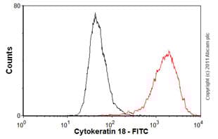 Mouse Monoclonal Cytokeratin 18 antibody - conjugated to FITC. Suitable for ICC, Flow Cyt (Intra) and reacts with Human samples. Cited in 14 publications. Immunogen corresponding to Cell preparation containing Keratin, type I cytoskeletal 18 protein.