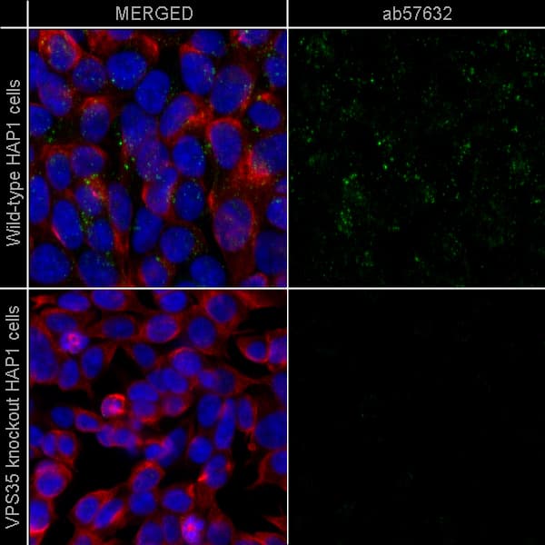 Mouse Monoclonal VPS35 antibody. Suitable for ICC/IF, Flow Cyt, WB and reacts with Human, Recombinant fragment samples. Cited in 21 publications. Immunogen corresponding to Recombinant Fragment Protein within Human VPS35 aa 650 to C-terminus.
