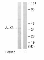 Rabbit Polyclonal ALX3 antibody. Suitable for WB, ICC/IF and reacts with Human samples. Cited in 4 publications. Immunogen corresponding to Synthetic Peptide within Human ALX3 aa 150-250.