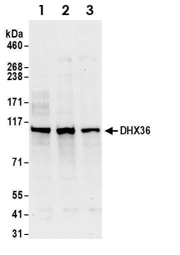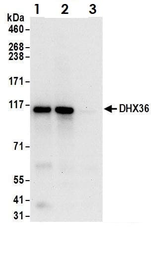 Rabbit Polyclonal DHX36 antibody. Suitable for IP, WB, IHC-P and reacts with Human, Mouse samples. Cited in 14 publications. Immunogen corresponding to Synthetic Peptide within Human DHX36 aa 950 to C-terminus.