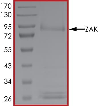 Recombinant human ZAK protein is a Human Full Length protein, expressed in Baculovirus infected Sf9, with >70% purity and suitable for SDS-PAGE, WB, FuncS.
