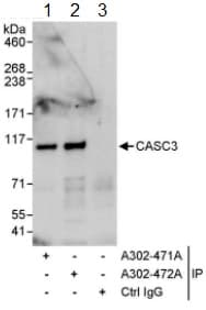 Rabbit Polyclonal MLN51/CASC3 antibody. Suitable for IHC-P, IP, WB and reacts with Human samples. Cited in 3 publications. Immunogen corresponding to Synthetic Peptide within Human Protein CASC3 aa 650 to C-terminus.